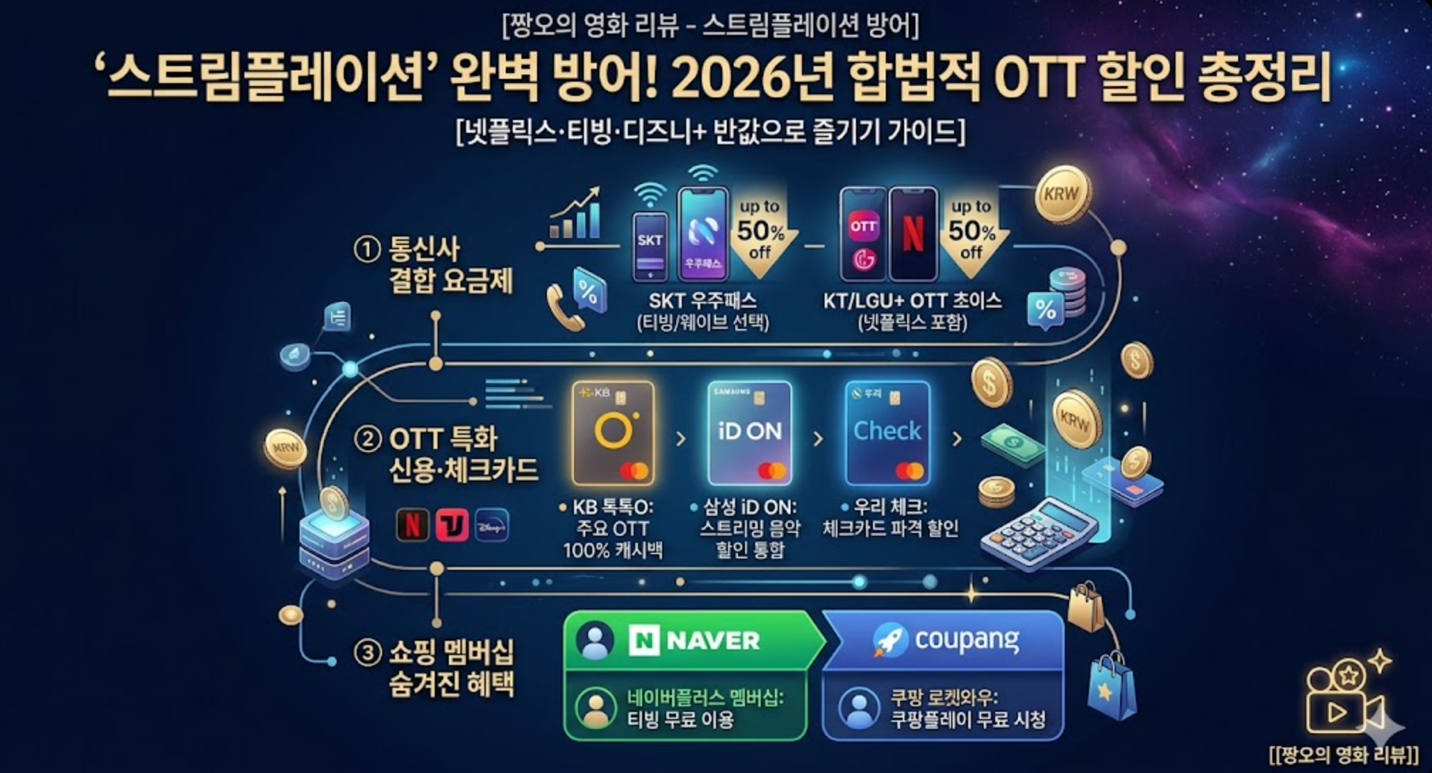 하지만 솟아날 구멍은 언제나 있는 법! 오늘은 불법 우회나 위험한 공유 사이트를 쓰지 않고, 가장 안전하고 합법적인 방법으로 OTT 구독료를 반값으로 줄이는 실전 꿀팁을 대방출합니다. 2026년 최신 버전의 통신사 혜택, 특화 신용카드, 그리고 숨겨진 결합 상품까지 모두 정리했으니 끝까지 확인해 보세요!