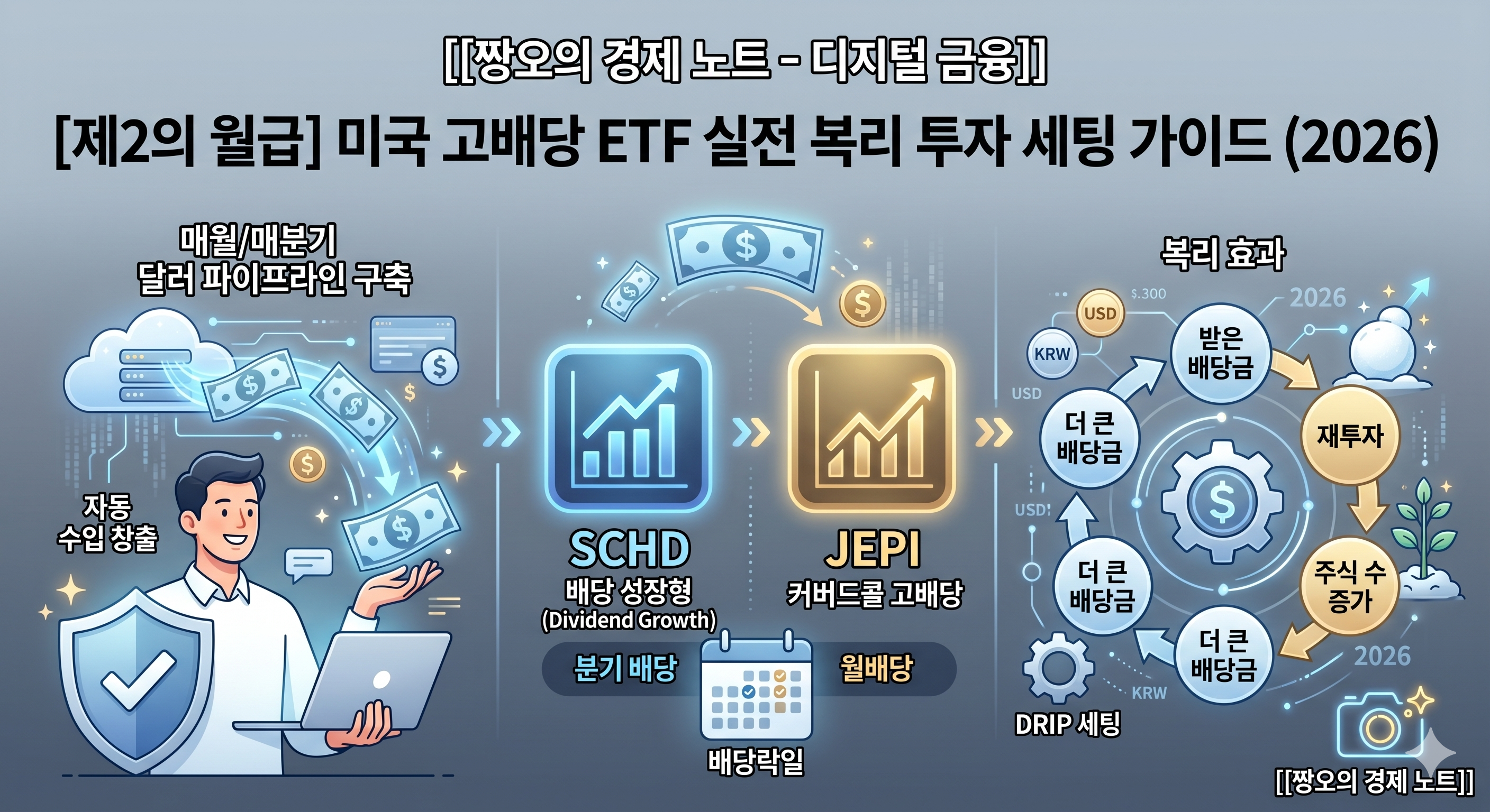 2026년, 요동치는 시장 속에서 흔들리지 않는 멘탈을 유지하는 비결은 바로 든든한 '배당 파이프라인'입니다. 지금 당장 본인의 포트폴리오에 SCHD와 JEPI를 담아, 달러가 일하게 만드세요!
